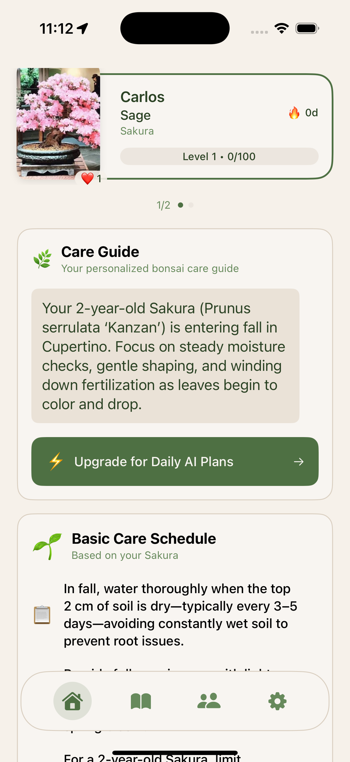 Gamified bonsai care app.